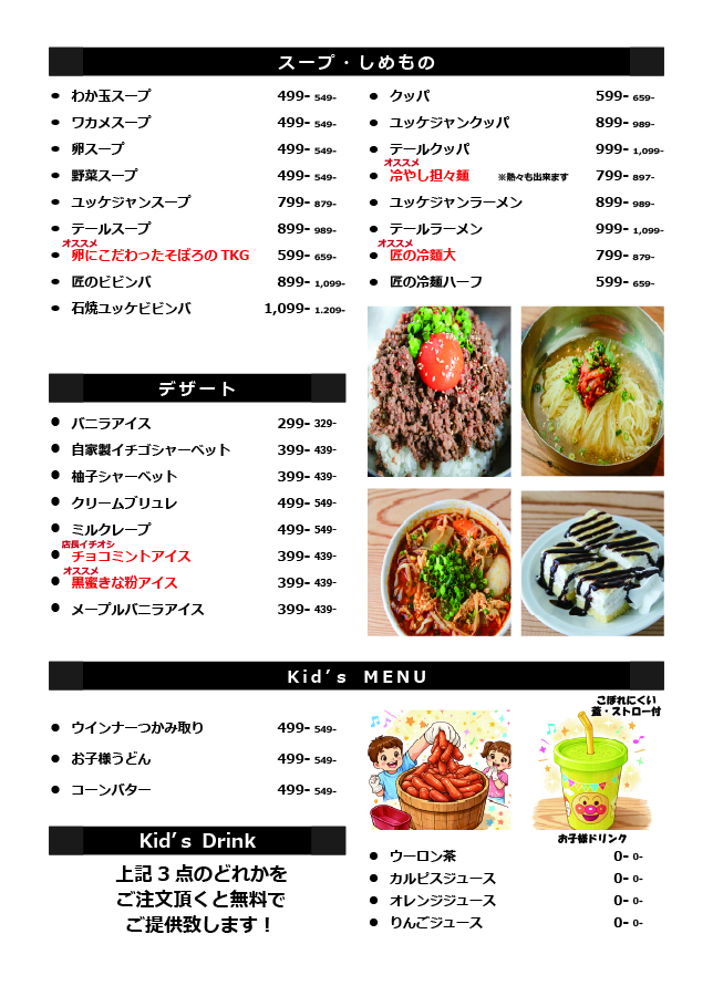 【焼肉匠本店】グランドメニューリニューアルのお知らせ