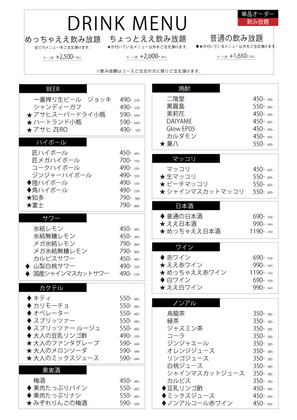 ※お席の指定などご要望がある際はお電話にてお願いいたします。